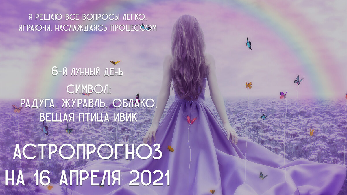 Доброго утра 6-го Лунного дня с символом Радуга, Журавль, Облако, Вещая птица Ивик с 7:03 утра 16 апреля 2021 года на легкой, как облако, Луне в Близнецах. 16 апреля, пятница — день Венеры, наконец освоившейся в собственном доме Тельца, на сегодня и недолго завтра образующая кратковременно действующую конфигурацию Аркан (80=40+40) на сильный Нептун в Рыбах от бинонагона (80) сильной Венеры...