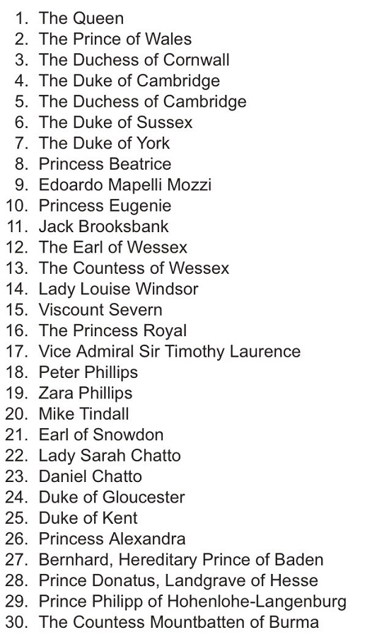 Из неожиданностей - в списке нет двоюродного брата Королевы принца Майкла Кентского и его супруги.