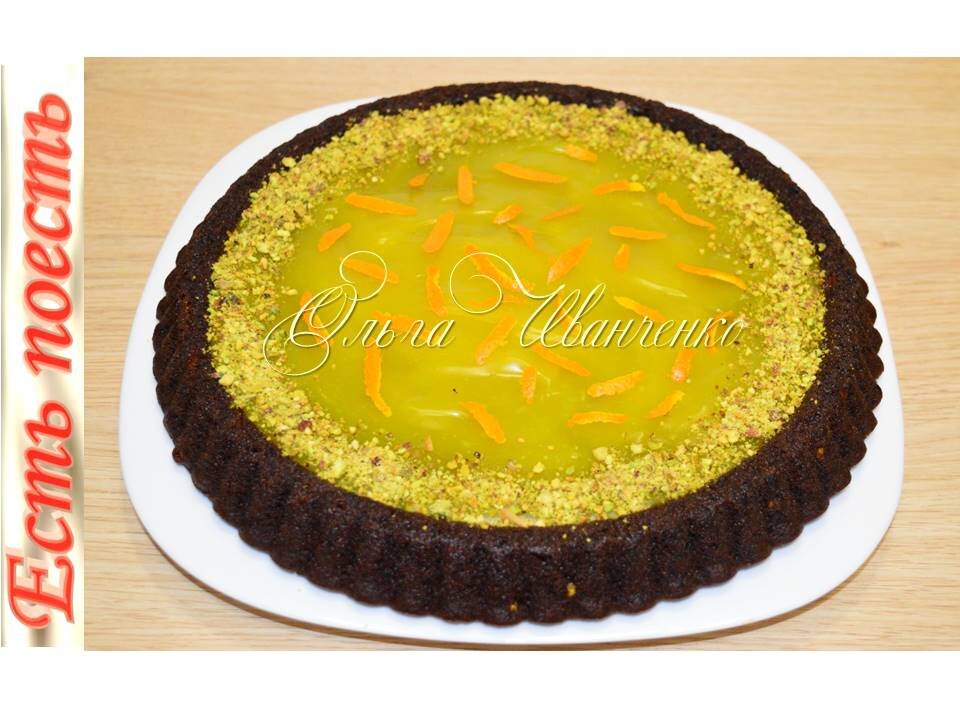 Украсить по желанию. Я посыпаю по кругу молотыми фисташками, в середине раскладываю цедру апельсина.