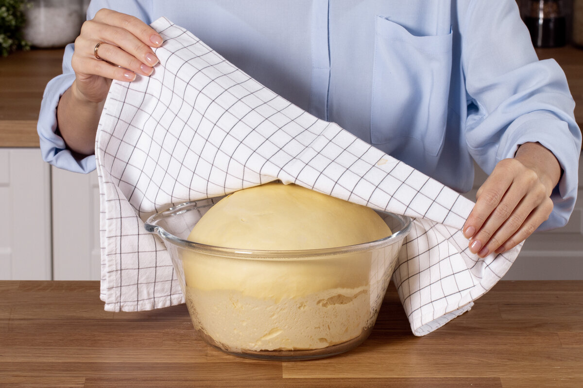 6. В конце добавьте мягкое масло и тщательно вымешивайте тесто еще 15-30 минут, пока оно не начнет отлипать от рук. Мы рекомендуем замешивать тесто во взбивальной машине.