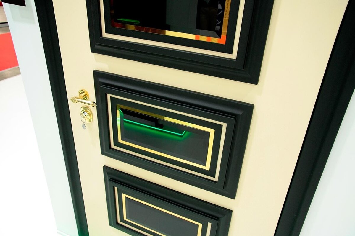 У «Гардиан» есть целая линейка дверей с нестандартным декором, где используются акриловые глянцевые элементы, металлические молдинги и узоры и даже стеклянные покрытия. Мы старались приблизиться к стилю хай-тек – выразительному и яркому. Тут возможная комбинация зависит только от вашей фантазии. Например, половина двери может быть металлической и черной, а вторая половина, отделенная стальным молдингом, – отделанной под дерево. Почему нет?