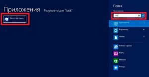 Он подразумевает применение поиска, для чего потребуется использовать либо правую панель и пиктограмму лупы, либо поисковую строку внутри интерфейса Metro. Задавать же нужно фразу «taskmgr», поскольку «Диспетчер задач» на английском – «Task Manager».