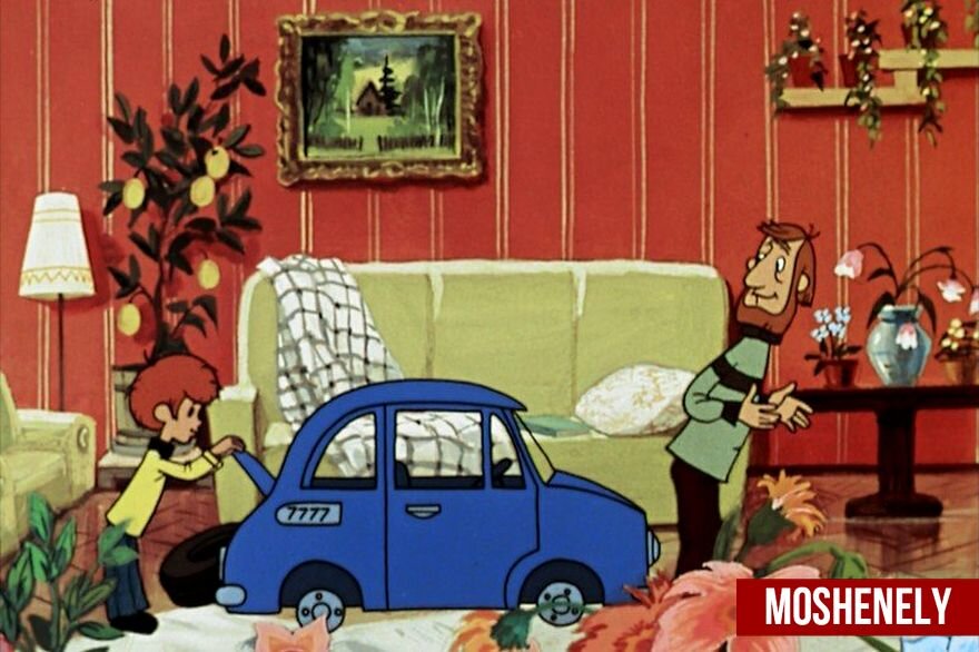 Например, почему машина находится в квартире? Причем она довольно маленькая, чтобы туда полноценно поместился взрослый человек. Основную ценность данного мультфильма составляют диалоги, поэтому желательно смотреть этот мультфильм, хотя бы немного зная русский язык.
