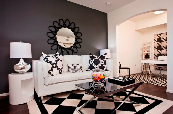 Если вы не располагаете большими квадратными метрами, и все ровно хотите привнести в интерьер больше черных и белых цветов, неплохим решением станет окраска стен в один из этих цветов, а на стену можно повесить какие-либо элементы декора или даже мебели, но в противоположном цвете.
