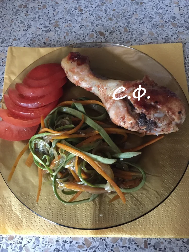 Овощной гарнир «Берегись фигура…» Если Вы следуете правильному питанию, но хотите разнообразить овощное меню новой подачей, то это для Вас подойдет на 100 %. Для приготовления нам понадобится: Молодой кабачок – 500 гр. Морковь – 1 шт. Лук – 1 шт. Подсолнечное масло для обжарки овощей – 1 ст.л. Соль, перец по вкусу Приступим к приготовлению: Морковь помыть, почистить. Кабачок необходимо помыть и обсушить бумажным полотенцем. Лук нарезать тонкими полукольцами. Кабачок и морковь нашинковать на терке для корейской моркови. Разогреть подсолнечное масло на сковороде и выложить лук, обжариваем до золотистой корочки. Добавляем к руку соломку из кабачка и моркови и закрываем крышкой. Немного томим, добавляем соль и перец по вкусу. Не забываем перемешивать. Я обычно готовлю минут 15-20. Я не люблю, когда овощи очень мягкие, поэтому такой гарнир довожу до полуготовности. Вкусно, просто и быстро, а главное полезно! Приятного аппетита!!! Если Вам понравился рецепт, ставьте лайки, пишите комментарий