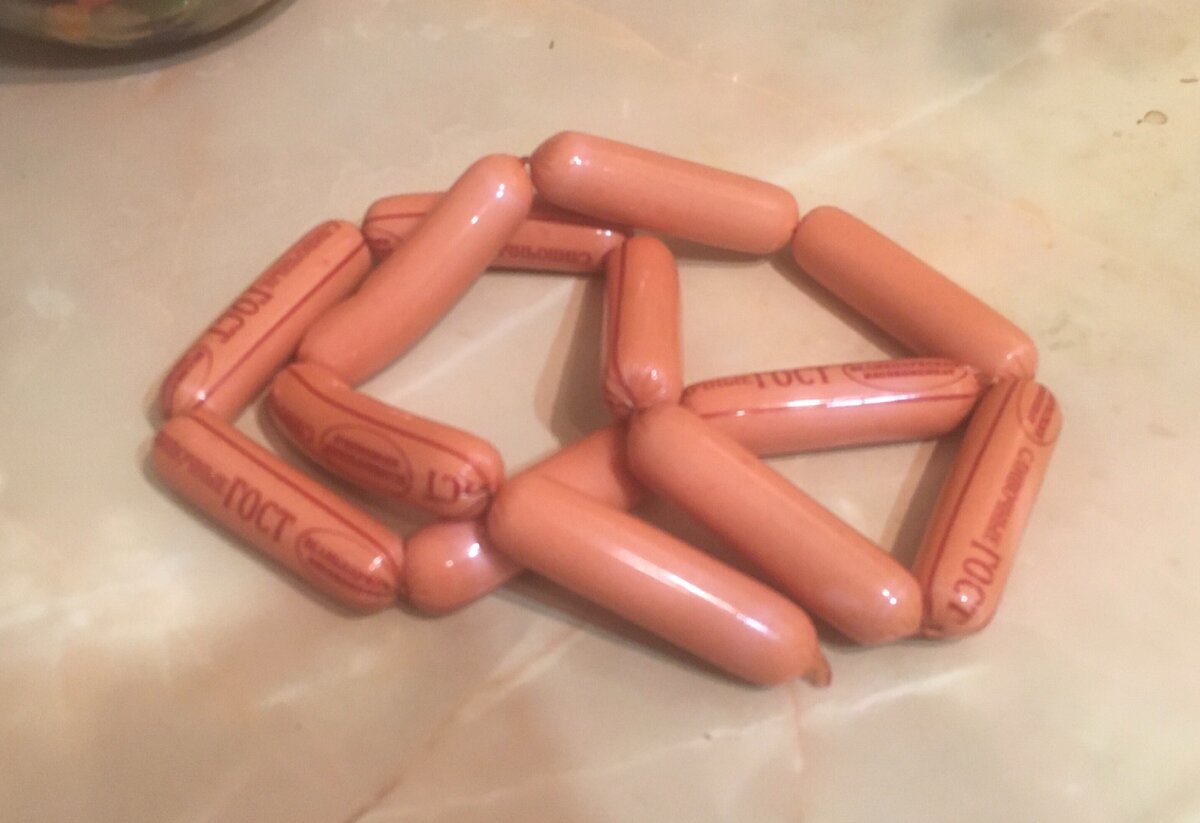 Но когда дело дошло до очистки, Стёпа удивил меня своей изобретательностью. Он почистил все сосиски буквально за несколько движегий. Я решил запомнить этот способ и попробовать дома на обычных длинных сосисках. У меня всё получилось. Ниже я поделюсь этим способом с вами.