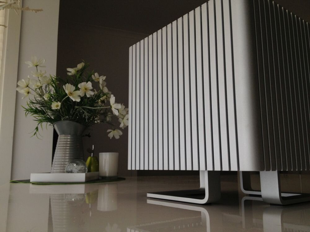 Почти три десятилетия я пытаюсь делать мои компьютеры тише. Жидкостное охлаждение собственного изготовления, гидродинамические подшипники с магнитной стабилизацией, акустические демпферы, силиконовые амортизаторы – я использовал всё, что можно представить. И на прошлой неделе я, наконец, сумел построить совершенно бесшумный компьютер. Без лишних слов, знакомьтесь: Streacom DB4 . Корпус размером 26 x 26 x 27 см без единого вентилятора. У него вообще нет никаких движущихся частей. Полная тишина, 0 дБ.