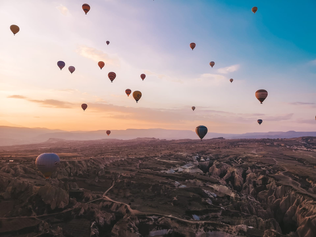 У большинства туристов при слове Каппадокия возникает образ летающих разноцветных воздушных шаров. Однако, это вовсе не то, ради чего стоит ехать. Конечно, наблюдать множество летящих шаров с земли или с самих шаров – это здорово, и прелесть как раз в их массовости. Но, к слову, шары летают не только в Каппадокии, а тамошние из-за практически ежедневной эксплуатации имеют вовсе не такие сочные расцветки .
