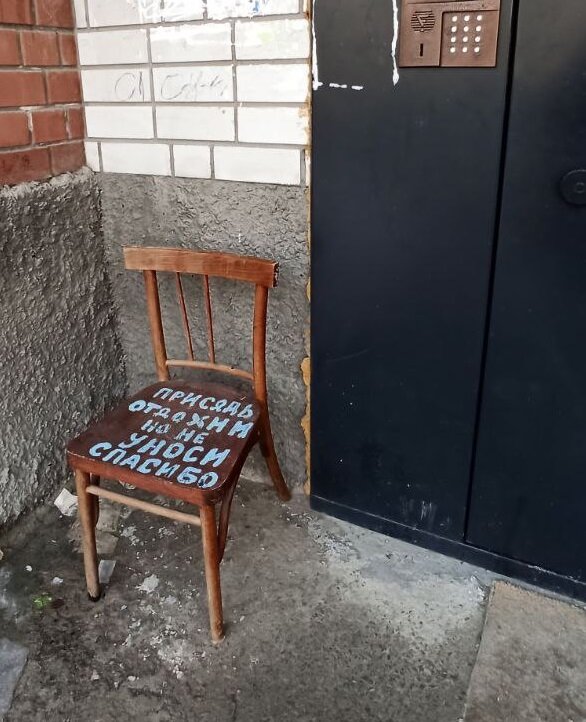 У подъезда жилого дома на улице Сумина в Пласте стоит стул с коротким указанием: “Присядь, отдохни, но не уноси, спасибо”. Несколько лет назад стул принес мой дед, так как у подъезда нет скамьи. С тех пор на стуле периодически сидят бабушки, идущие из магазина, мамы, уставшие бегать за детьми, или даже молодые парни, “залипнувшие” в телефоне. Только мой дед уже больше не сидит.