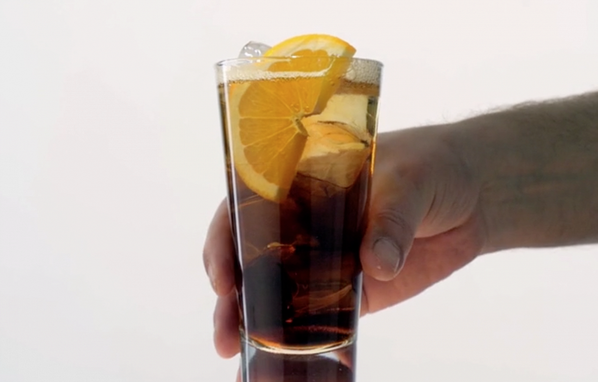 3. Затем заполнить хайбол тоником доверху. Украсить долькой апельсина.