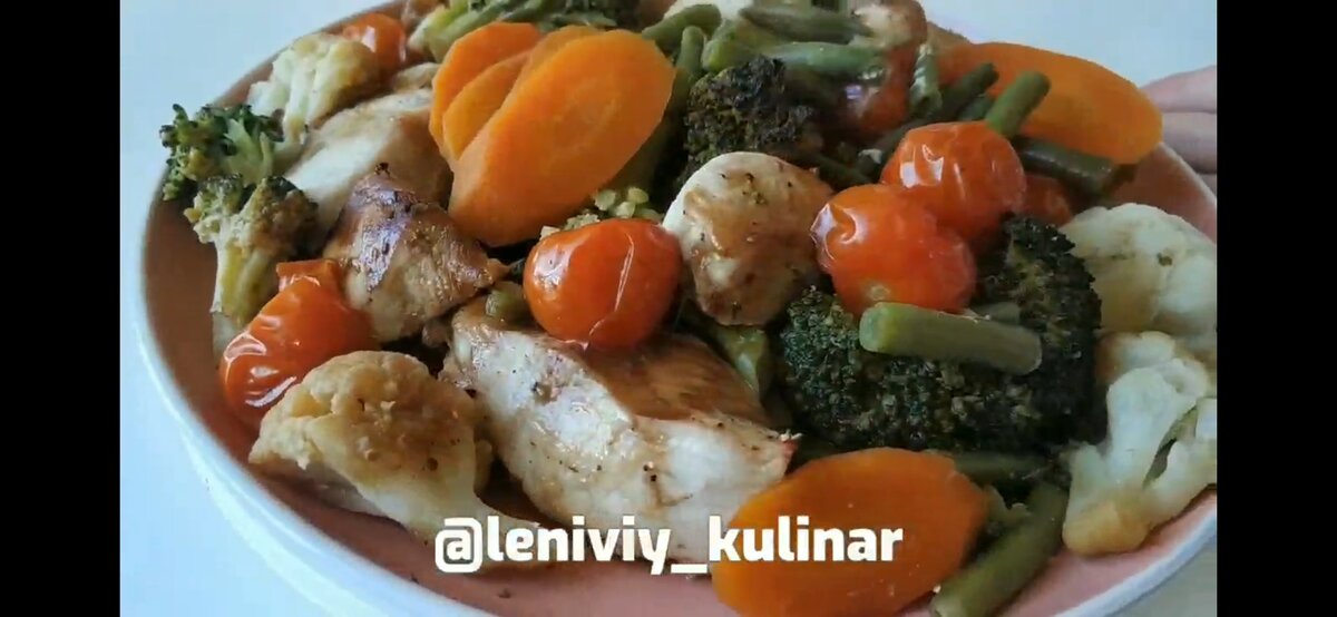 У нас были брокколи, морковка, цветная капуста, помидорки, фасоль и немного филе