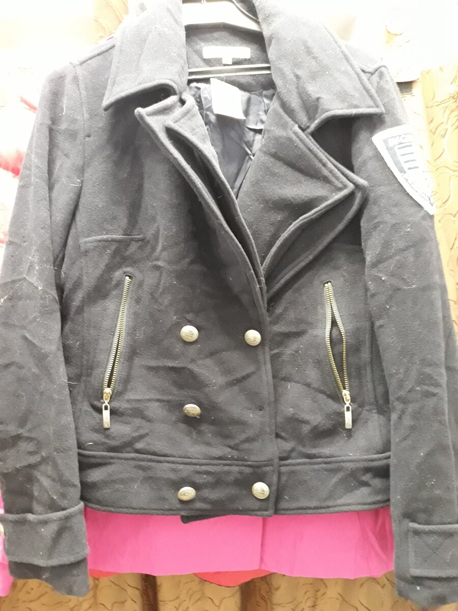Пальто смотрится круто. Но я его не купила. Нашла маленькие протертости подмышкой. Или же его отведала моль.