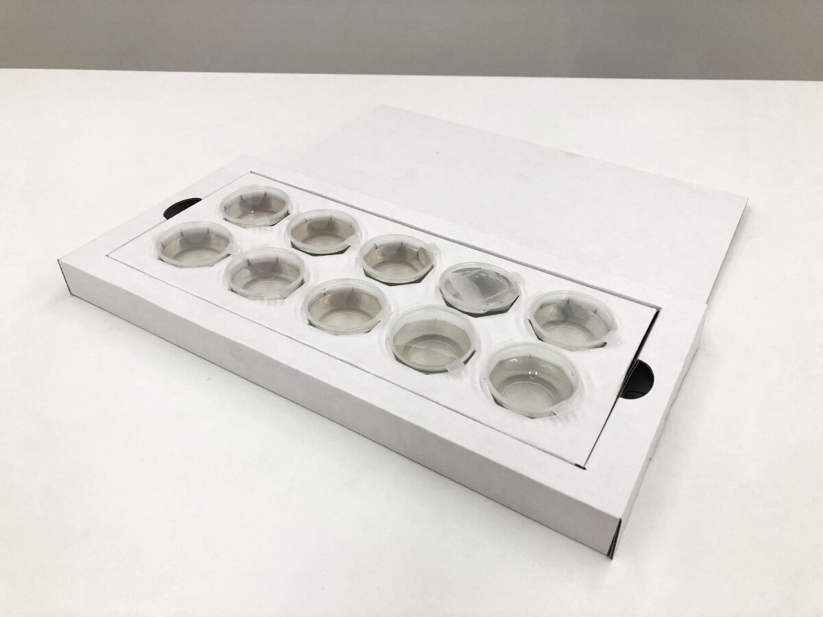 Лоток имеет полые стенки, которые выполняют роль амортизатора, нейтрализуя возможные во время дегустации вибрации. На торцах лотка находятся два отверстия под пальцы. Это необходимо для того, чтобы многократно извлекать содержимое.