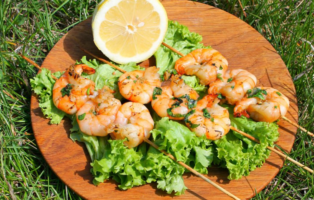 Шашлык из тигровых креветок очень вкусный и ароматный. Рецепт простой и готовятся креветки за пару минут. Запах огня наполняет блюдо особым вкусом, а креветки получаются нежные и сочные.