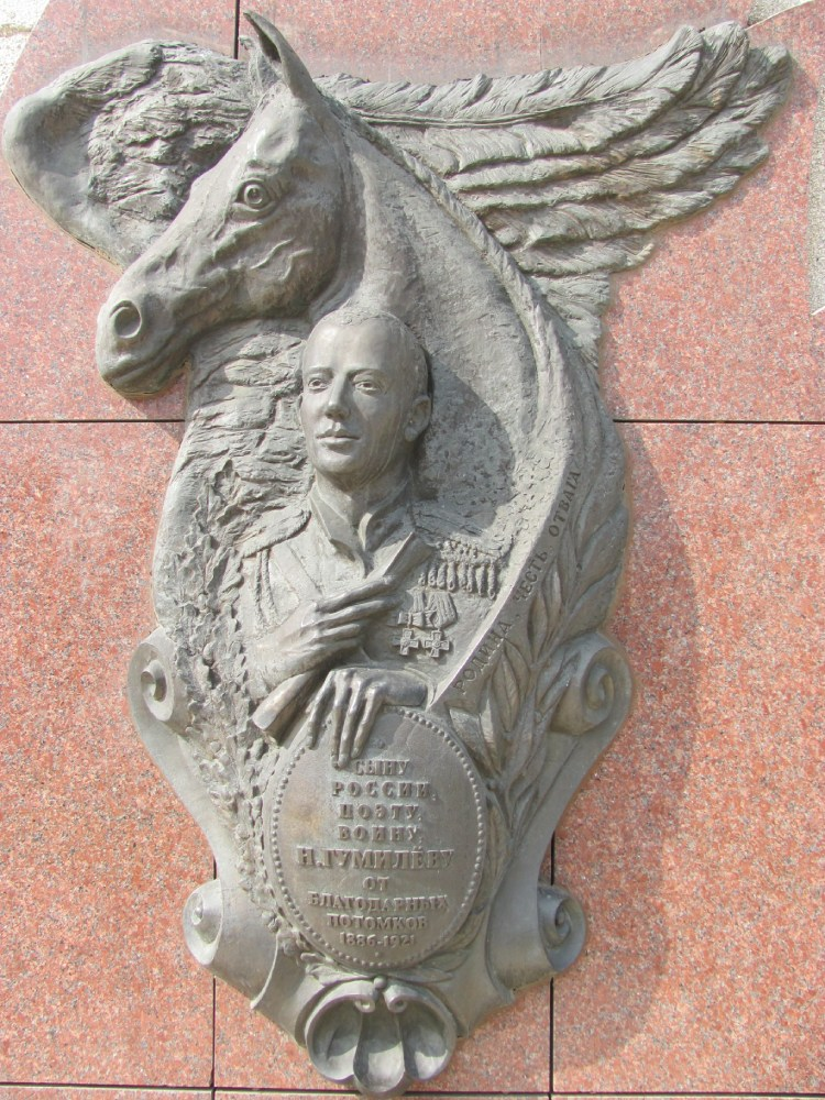 Этот случай произошёл в прошлом году в Калининграде. 26 августа, в день памяти Николая Гумилёва, я побывал у мемориального знака поэту, установленного на одной из боковых стен безликого Дома Искусств. Знак представляет собой бронзовый барельеф, прикреплённый к гранитным, красного цвета плитам, похожим на языки пламени. Гумилёв изображён в военной форме, на груди - солдатские Георгиевские кресты 3-й и 4-й степени. В одной руке - свёрнутый в трубку лист бумаги, другая опирается на овальной формы щит, на котором написано: «Сыну России, поэту, воину от благодарных потомков. 1886-1921». Над головой - крылатый конь Пегас, общепризнанная аллегория поэтического творчества. Фигуру Гумилёва обрамляет девиз, должным образом отображающий страницы его военной биографии: «Родина. Честь. Отвага». В Калининграде этот знак появился не без причины. Дело в том, что в начальный период Первой мировой войны Гумилёв сражался в той части Восточной Пруссии, которая по итогам следующей мировой войны стала Кали