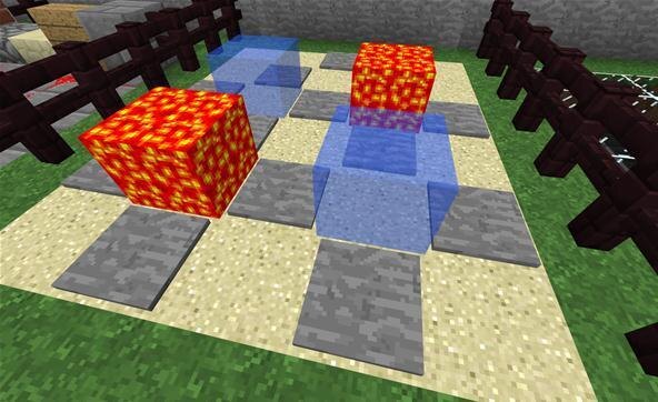 Два вида материи: вода и лава ведут себя наиболее хитро, это жидкости, которые растекаются в разные стороны и удержать их можно только внутри блоков. Не совсем так. Узкие панели давления (или деревянные указатели) могут творить чудеса. Если вы расставите их так же, как расставили бы обычные блоки с четырех сторон, а в середину выльете воду, то у вас получится прозрачно-голубой куб, который будет выглядеть как аквариум и не расползется по сторонам. То же самое можно проделать и с лавой. А надстраивая указатели друг на друга аквариум можно сделать высотой в несколько этажей.