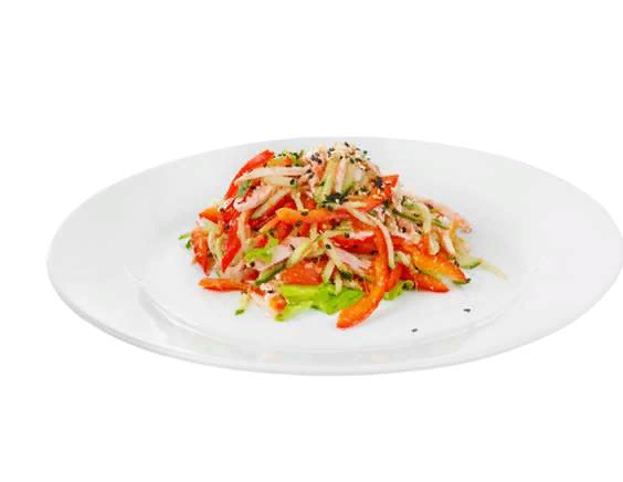 - 3.Огурец, ветчину и перец режем кубиками. Добавляем масло и хорошо перемешиваем.