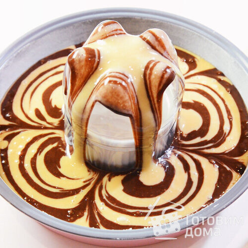 И поочередно выливаю темное и светлое тесто (смотрите подробный видео рецепт).
