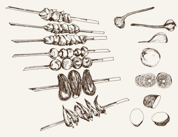 После того как мясо промаринуется часа полтора в холодильнике, его нужно очистить от излишков маринада. Затем насадить на шампур – обязательно поперёк, не вдоль. При жарке первое время мясо будет свисать вниз, как уши спаниеля. Но довольно скоро на среднем огне оно прижарится, получит корочку и, когда вы перевернёте шампур, эти уши образуют красивую решётку. Так даже удобней жарить. Плюс, чем меньше вы повреждаете мясо при насаживании, тем больше в нём останется сока, и тем вкуснее будет шашлык.