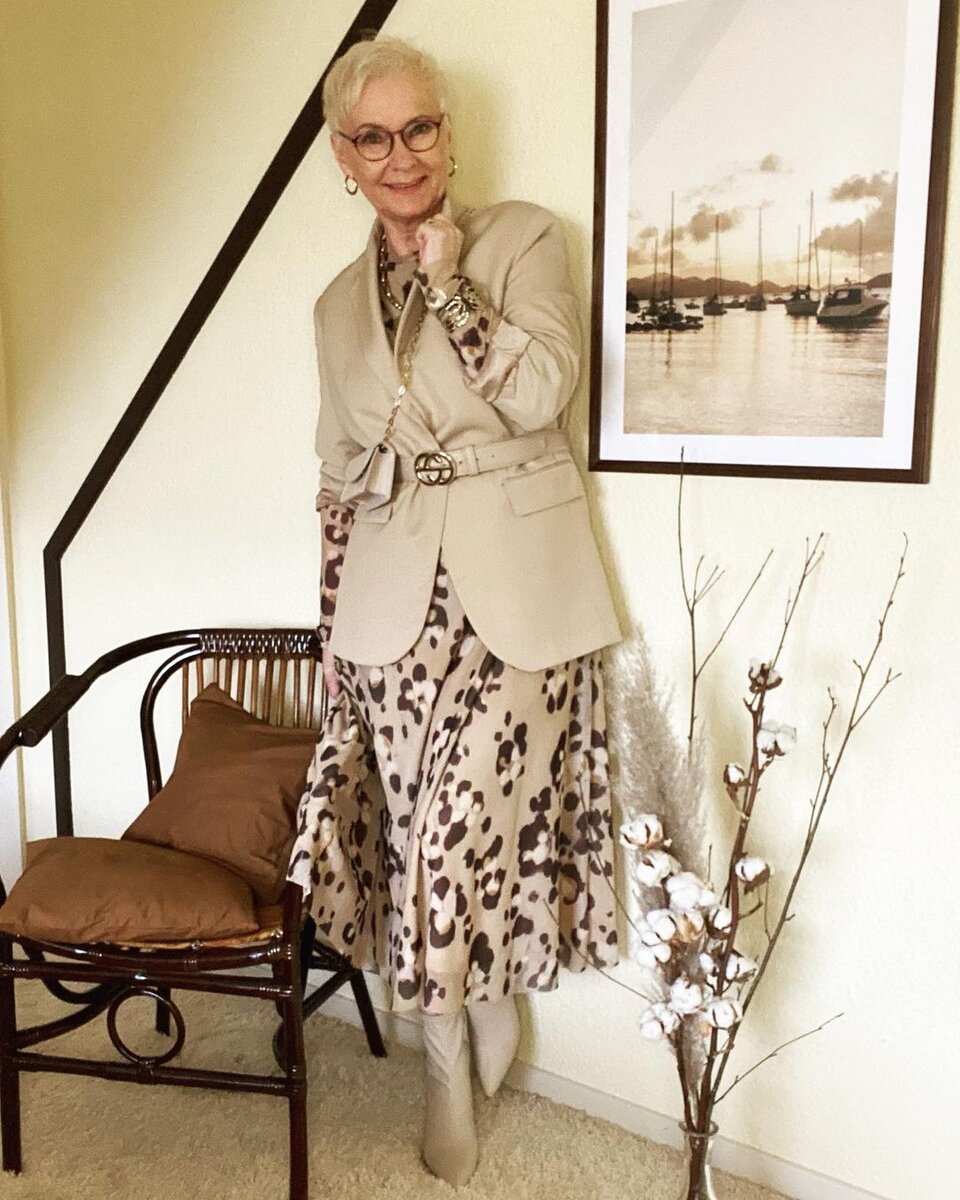 Джинсы облегающего кроя, жакет, кардиган – это та необходимая база для женщины за 60, которую можно расширять и дополнять по своему вкусу.