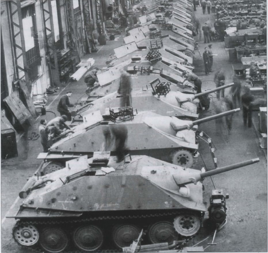 В то же время наступил кризис и в выпуске штурмовой артиллерии. В ноябре 1943 года англо-американская авиация подвергла мощной и весьма успешной бомбардировке берлинский завод фирмы Alkett. В результате авиаудара были серьезно повреждены цеха и оборудование крупнейшего изготовителя основного противотанкового средства — штурмовых орудий. План производства штурмовых орудий на 1944 год оказался под угрозой срыва. Чтобы не допустить этого, к их выпуску в декабре 1943 года подключилась фирма Krupp. Поскольку последняя являлась генподрядчиком по изготовлению средних танков Pz.IV, то неудивительно, что, приступая к производству штурмовых орудий, крупповцы сделали ставку на «четверки». Благодаря использованию рубки от StuG III, обе САУ были унифицированы почти на 20%. Но новое штурмовое орудие StuG IV, во-первых, оказалось довольно дорогим, а во-вторых — для их производства использовались шасси танков Pz.IV, которых Вермахту тоже не хватало. Необходимо было иное решение, например, привлекать к выпуску штурмовых орудий другие предприятия. Специалисты из Управления вооружений сухопутных войск (Heereswaffenamt) обратили свой взор на пражский завод ВММ (до оккупации — CKD).