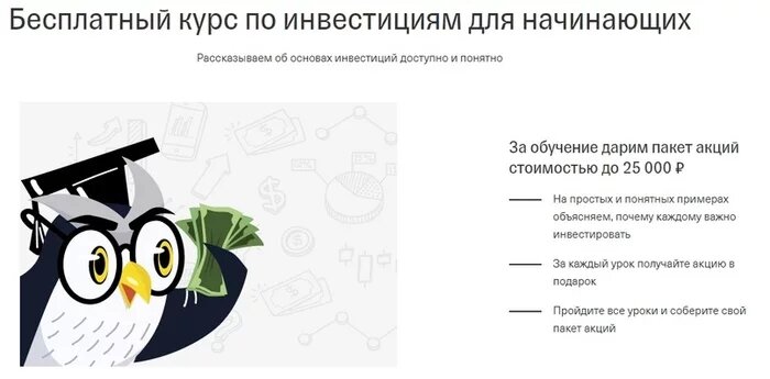 До 31 октября откройте брокерский счет от Тинькофф, пройдите обучение из 10 «Уроков» и получите за каждый по акции стоимостью до 25000 рублей!