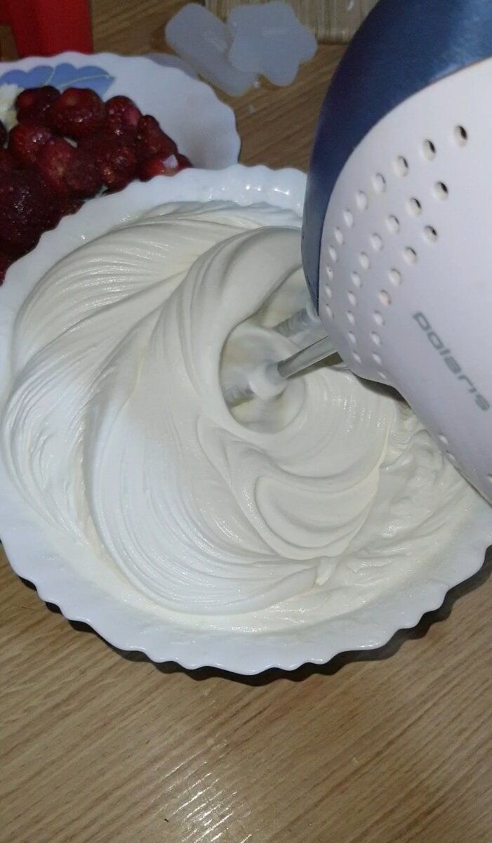 1) Взбить охлажденное молоко и "Крем для торта" до густоты.