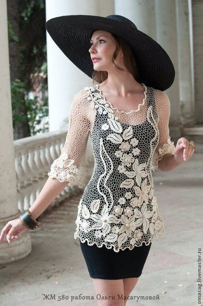 Туника молочного оттенка связана крючком в технике ирландского кружева. Не самая сложная модель, как раз для тех, кто хочет попробовать свои силы в этом направлении.