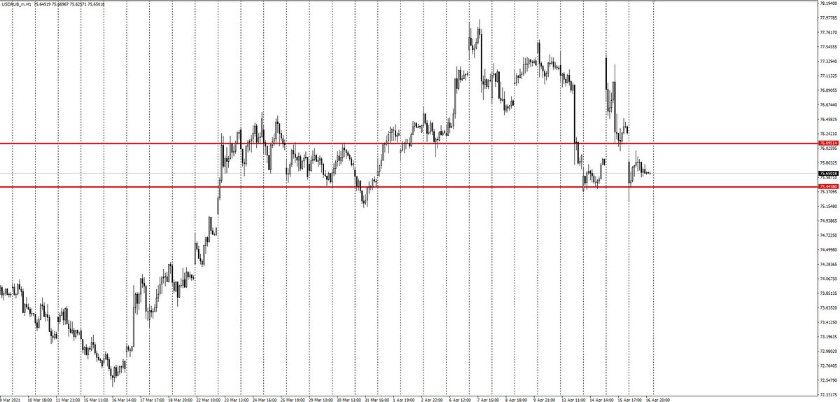 Итак, для начала мы идём на интервал Н1 валютной пары USD / RUB . Если говорить глобально, у нас сформировалась своего рода консолидация, а потому чёткого приоритет по позициям у нас нет.