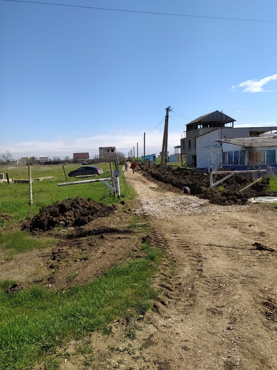 Здравствуйте! Ездили на море, обратили внимание, что воду то уже ведут. Начали снизу, напомню вдоль бетонки труба, колодцы уже проложены, проект по участкам подписан, теперь и работы начались.