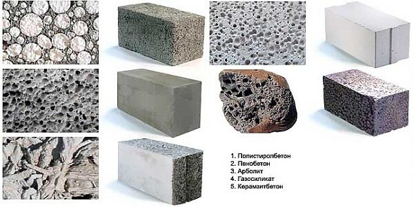 - пенобетон. Классический ячеистый бетон, в состав которого, помимо цемента, воды и песка, входят вещества-пенообразователи;