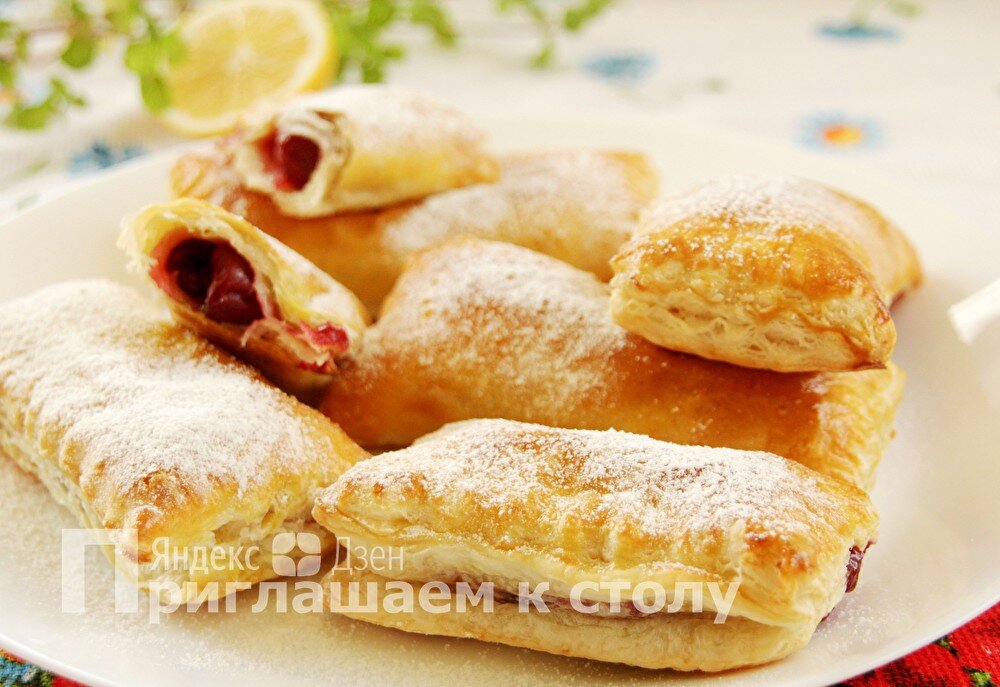 Я обожаю выпечку с вишней. Когда мне повстречался новый рецепт слоек с этой чудесной ягодой, я сразу же решила его испробовать. Аппетитное, хрустящее лакомство с сочной кисло-сладкой начинкой чрезвычайно понравилось моим домашним. Они так часто просили повторить его на бис, что в результате все мои запасы замороженной вишни были исчерпаны за месяц. Продукты, которые потребуются: Первым делом достаем из морозильника вишню и высыпаем в дуршлаг, чтобы с нее стекал сок. Когда ягода оттает, пересыпаем ее в миску, добавляем сахар, перемешиваем. Возвращаем в дуршлаг и оставляем еще минут на 20. Одновременно с вишней вынимаем для разморозки слоеное тесто. Я предпочитаю использовать дрожжевое — из него слойки получаются более легкими, пышными и воздушными. Кладем его на чуть присыпанную мукой поверхность, а чтобы оно не заветривалось, прикрываем влажным полотенцем. В условиях комнатной температуры тесто разморозится в течение 30–40 минут. Размороженное тесто помещаем на слегка присыпанную му