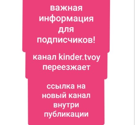 На канал kinder.tvoy вы можете писать комментарии,сообщения,читать статьи и смотреть видео,но новые публикации будут только на новом канале Обзоркина(kinder.tvoy).