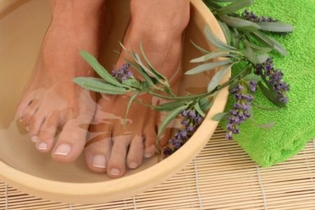 Если ноги к вечеру устают и отекают, помогут содовые ванночки на отваре трав. Подойдет ромашка, календула, липа, шалфей, зверобой. Травы ускорят заживление ранок и трещин. На литр отвара добавляют столовую ложку соды и ложку меда.