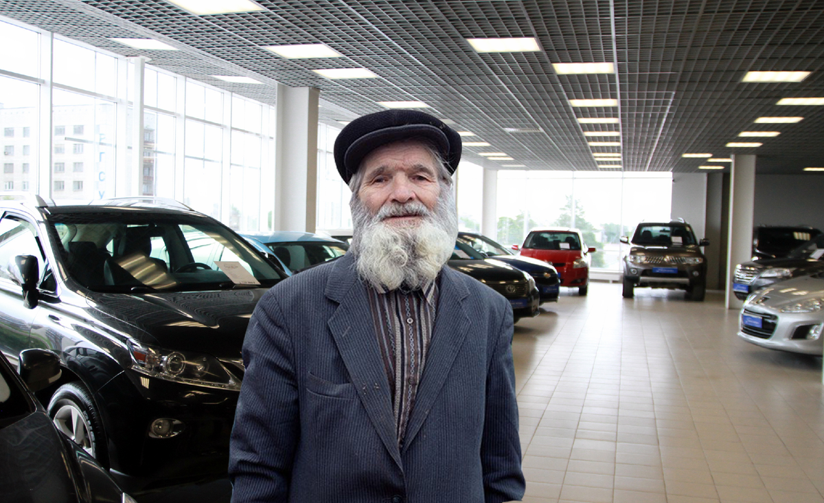 Дед осмотрел машину со всех сторон, заглянул внутрь через стекла, затем изучил описание с ценой и открыл дверь автомобиля. Менеджеры в это момент напряглись: