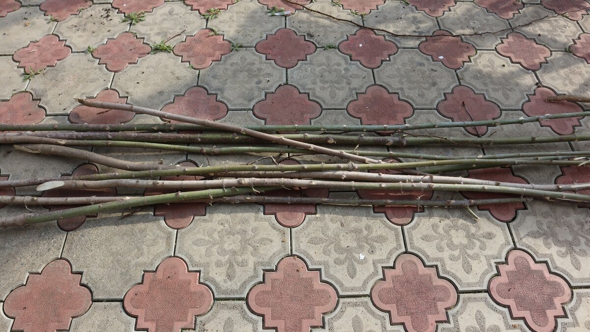 Я уже делала из реек, купленных в магазине, теперь хочу сделать из веток деревьев. Но здесь проблема в том, что очень трудно набрать толстых прямых палок. В нашей местности в основном ветвистые деревья.