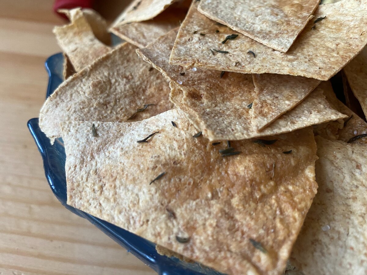 1-2 раза в неделю мы наведываемся в вегетарианское кафе-магазин за чем-нибудь необычным и вкусным. Чего там только нет: соевый пармезан, тофу с разными добавками, стейки и сосиски из сейтана, не говоря уже о растительном молоке и бобовой бакалее. Много чего мы перепробовали и на этот раз взяли цельнозерновой лаваш с отрубями. Из него я наготовила несколько пицц с ветчиной, а остатки лаваша ушли на погрызушки. Режем лаваш на кусочки и раскладываем на противень. Сбрызгиваем оливковым маслом, добавляем щепотку крупной соли. Я посыпала зирой - очень ее люблю. Отправила в горячую до 200 градусов духовку примерно на 10 минут до появления коричневой корочки. Выложила на тарелку и поставила на стол. Теперь не могу пройти мимо, чтобы не захватить эту чипсинку. Один минус - зира не прилипла к лавашу, поэтому осталась на тарелке и противне, надо было мазать каждый кусочек маслом с помощью кулинарной кисти. #привет_закуска #привет_правильная_еда Понравилась статья? Ставь лайк и подписывайся н