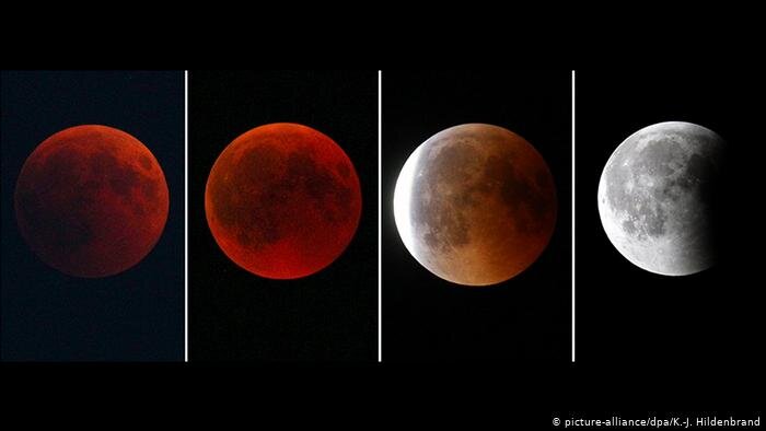 Её ещё называют Кровавой волчьей Луной. Само событие будет представлять из себя три астрономических явлений. Во-первых, Луна сблизится с Землёй на максимальное расстояние, то есть произойдет суперлуние. Луна будет заметно больше, чем обычно. Во-вторых, спутник попадёт в тень от Земли, то есть произойдёт лунное затмение. Однако, почему тогда Луну будет видно? А потому что, в-третьих, солнечные лучи попадут на поверхность Луны через атмосферу Земли, из-за чего та приобретёт красный оттенок.