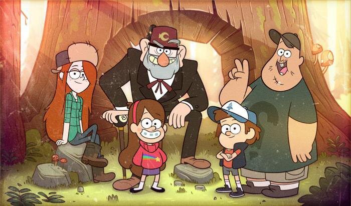 "Гравити Фолз" - американский мультфильм, созданный Алексом Хиршем. Он рассказывает о приключениях 12-летних близнецов, Мэйбл и Диппера Пайнс, которых отправляют на каникулы к двоюродному дедушке Стэну в маленький городок в Орегоне под названием "Гравити Фолз". Герои чувствуют, что в этом месте происходит что-то странное, и вместе они начинают разгадывать тайны этого города.