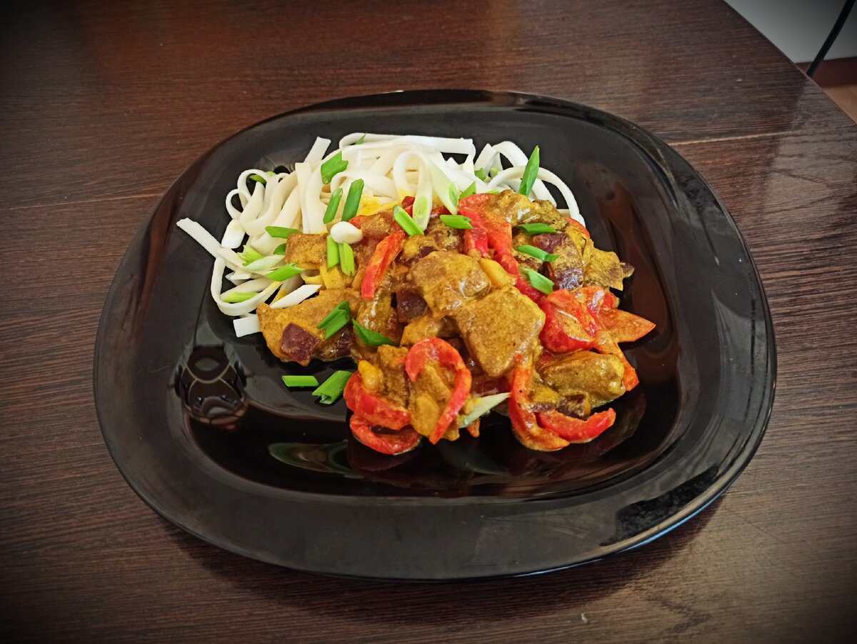 Мясо по-тайски готовится по нескольким рецептам, я решил разобрать один из них них, содержащий молоко. Использование молока в рецепте делает блюдо более мягче и и "сливочнее". Нам понадобятся: Как готовить: Для начала нужно промыть, подсушить и очистить мясо от пленок, сухожилий, жиринок. Нарезаем мясо либо тонкими пластинками, либо крупной соломкой. Добавляем в мясо 2-3 столовых ложки соевого соуса, выдавливаем сок четверти лимона, перемешиваем и даем промариноваться пол часа. Нарезаем овощи как вам нравится. Я решил нарезать все как на фото. Лук квадратными пластинками, болгарский перец тонкими длинными пластинками, перец чили очень мелко, чеснок поперечными пластинками. Теперь начинаем жарить. В первую очередь приступаем к жарке овощей. Обжариваем сначала немного лук, затем добавляем болгарский перец, перец чили, чеснок. Жарим все на сильном буквально пару минут. Вливаем соевый соус и помешивая дожидаемся пока соевый соус выпарится. Очень важно не пережарить овощи. Болгарский