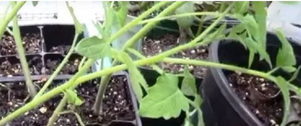 В круговороте дел пропустила, момент, когда стояли пасмурные дни. Растениям не хватило света, они тянулись к стеклу и некоторые, частично, полегли. Рассада вытянулась.