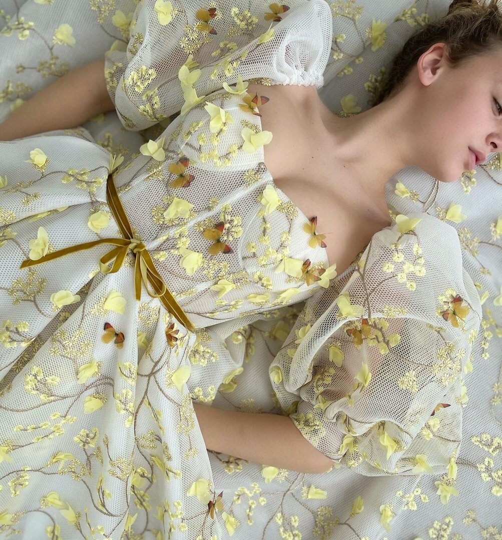 Наряд с бесконечным количеством желтых лепесточков . Цветочное платье наверняка покорит твое сердце! А вы хотели бы себе такое?