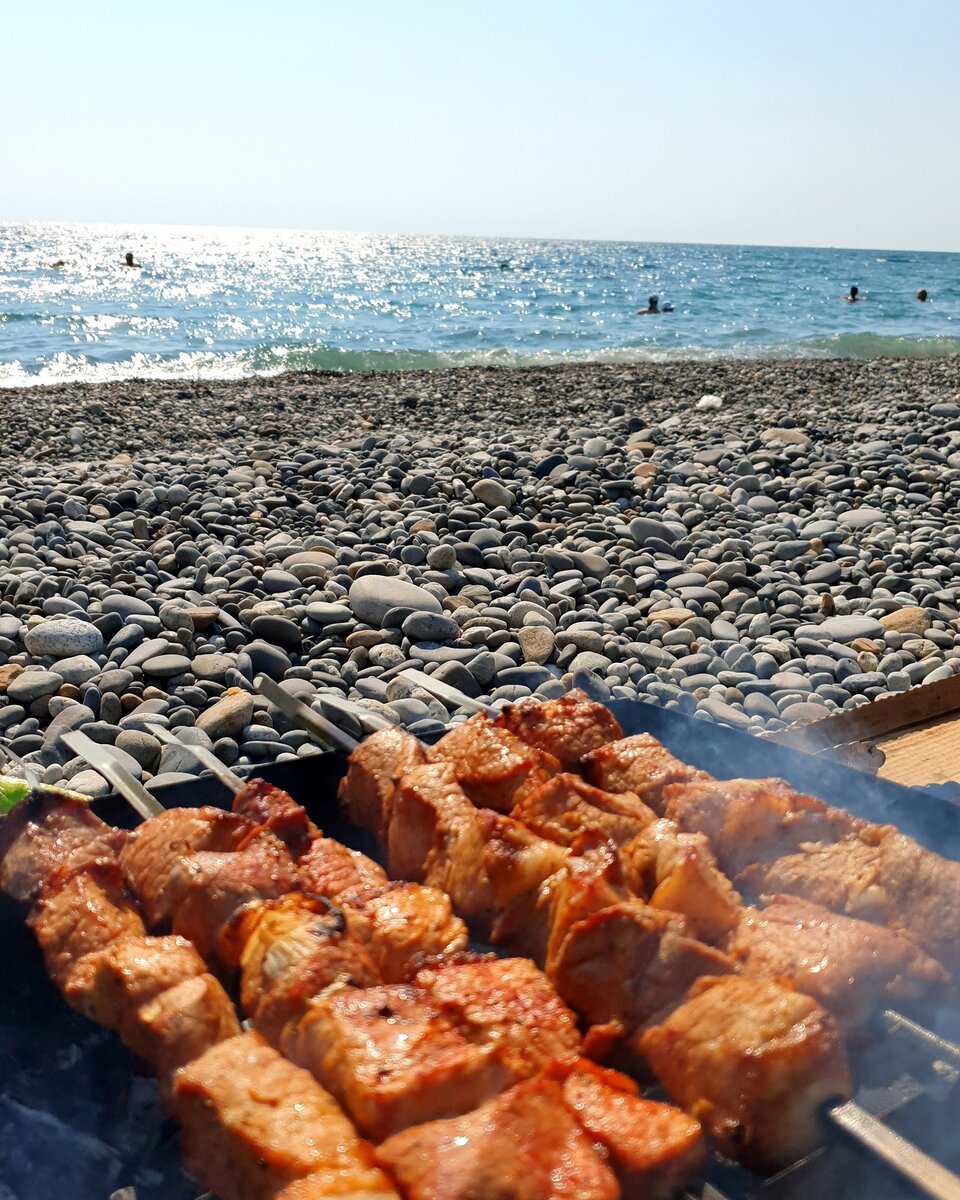 Самый наверное популярный вариант это всё же пикник на море. Ещё бы, вкусное мясо, приправленное свежим морским воздухом и охлаждающей в летний зной морской водой- лучшее сочетание! Но нужно правильно выбрать место, на городских пляжах разводить костры запрещено, поэтому лучшее решение это дикие пляжи. Но и там выберите такое место, подальше от скопления народа, чтоб никому не мешать дымом от костра. В каждом из районов Сочи есть такие малолюдные пляжи- например Крылья балтики в Адлере, Красный штурм в Хосте или пляж 73 км. на Мамайке.