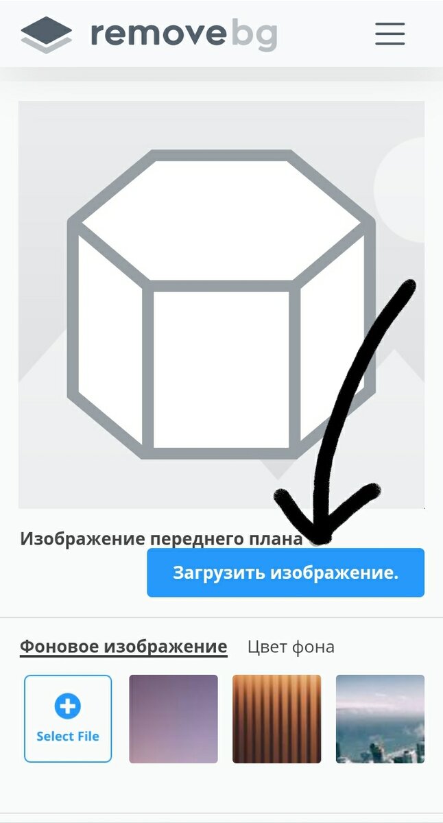 2. Нажать загрузить изоображение. Где будет вырезан фон автоматически