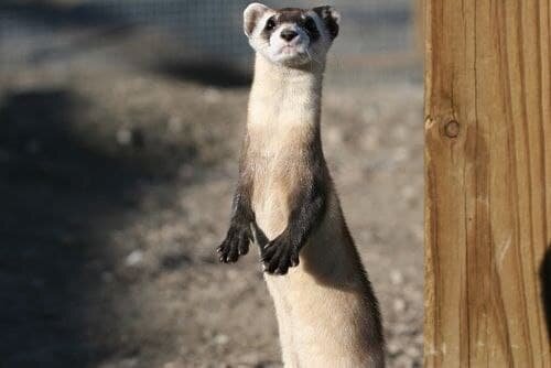 Приблизительно 45 см в длину, с пушистым 15 сантиметровым хвостом, весит 650—1400 г. Одна семья черноногих хорьков поедает около 250 луговых собачек в год и не может выжить, не имея доступа к большим колониям этих грызунов. Типичная колония луговых собачек проживает на 50 гектарах прерий и удовлетворяет питанием только одного взрослого хорька. Хорьки полностью зависят своим выживанием от колоний