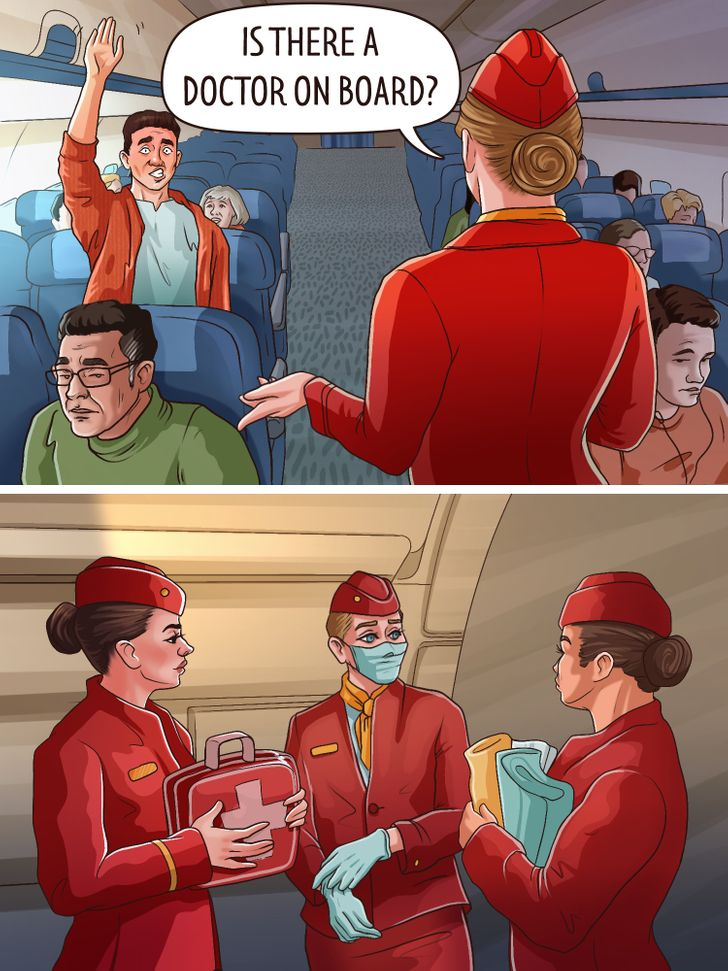Даже если это случается редко, но у женщины начинаются схватки, у бригады не так много вариантов. Во-первых, бортпроводников не учат принимать роды. Так что в этот момент все будут надеяться, что в рейсе есть врач или медсестра.