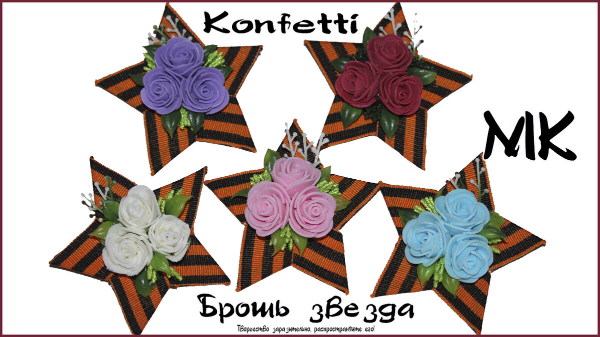 Привет ты на канале Konfetti. В этом мастер классе покажу как создать очень красивую брошь звезду к 9 мая. Я подробно покажу как сделать розу из фоамирана самым простым способом и собрать всю композицию. Подробно покажу как создать основу и оформить брошь.