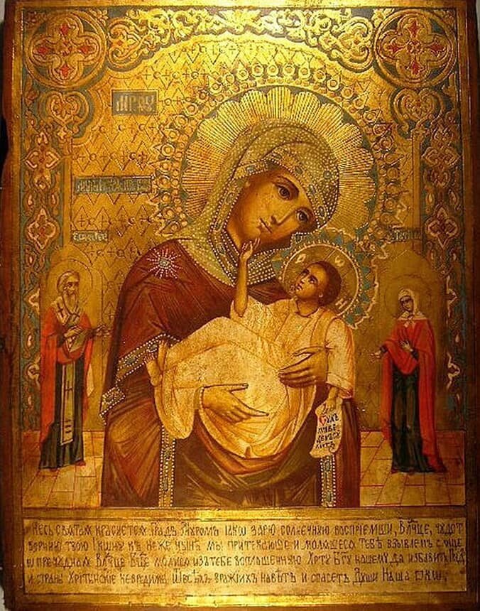 Внизу иконы обычно пишут текст из тропаря (краткого молитвенного песнопения):