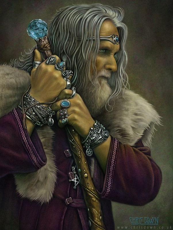 Хайде ничего не оставалось, как пойти за ним, ведь найти дорогу домой сама она уже не смогла бы. Крадучись, от дерева к дереву перебегала она, стараясь не потерять серый плащ из виду. Обойдя холм по длинной дуге, старик вышел на широкую поляну. Поляной, конечно, это не было, просто деревья росли тут реже. Проходы между стволами устилали дощатые помосты, они вели к низкой бревенчатой хижине с большими окнами. Старик спокойно прошёл к дому и уселся в плетёное кресло перед входом. Он сидел почти спиной и не видел девочку, а она из своего укрытия могла видеть его целиком. Старческие пальцы скинули капюшон и сняли с головы серебряный обруч с изящным орнаментом. Длинные седые волосы мгновенно потемнели, морщины на коже разгладились. Хайде ужасно захотелось взглянуть на его лицо.