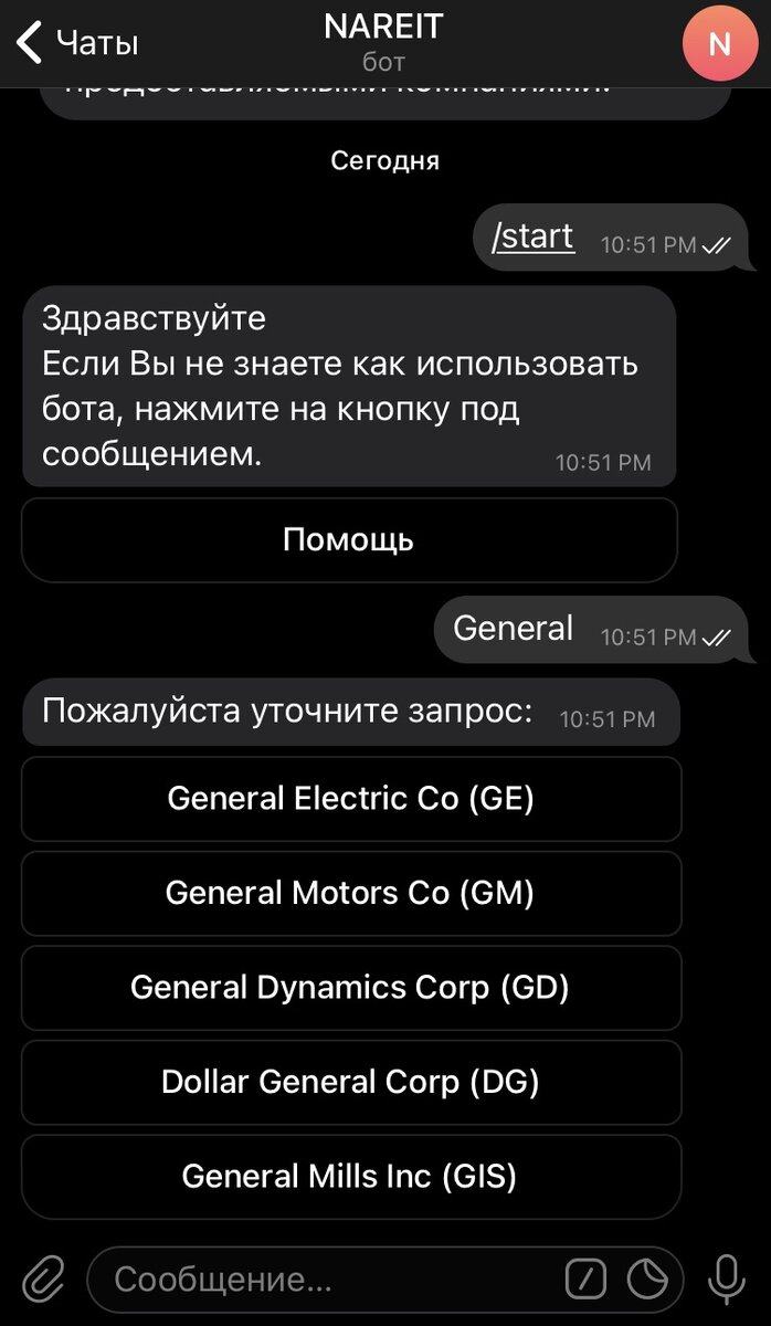 Всем привет! Пару дней назад я запустил телеграм бота @nareit_bot, помогающего мне анализировать финансовые показатели компаний перед покупкой в портфель.